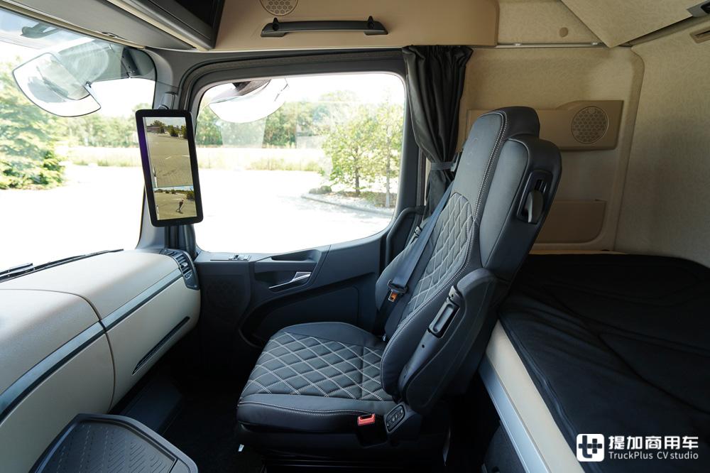 参加本次测试的奔驰车型是一台Actros L 4x2牵引车。车辆采用Gigaspace平地板驾驶室,具备充足的内部空间。并且,车辆还配备了电子后视镜等多项配置。BIGTruck评价:这台卡车是本次参试卡车中智能程度高的车型。