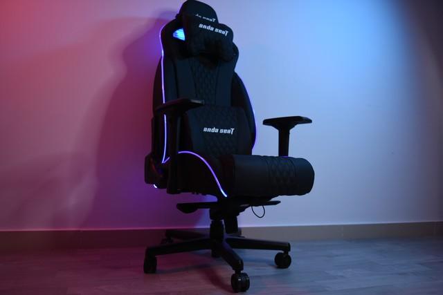 从外观上看,第一感觉是厚实,你看看那厚厚的坐垫和靠枕。第二感觉是炫酷!安德斯特电竞椅在周围做了环绕灯带的设计,灯带的颜色比较均匀,恰到好处的勾勒了边框。