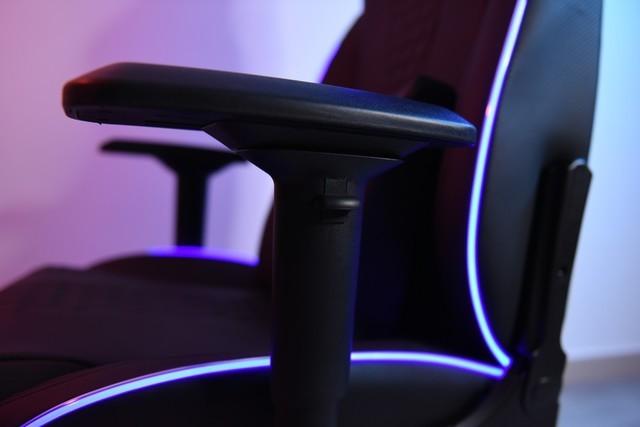 永夜王座的扶手支持上下左右旋转调节,由于和椅背是独立的设计,所以根本就不会因为依靠角度而影响高度,这一点和前面的几款电竞椅有着本质的差别,身材比较魁梧的国汉也能通过调节扶手找到舒适的坐姿。