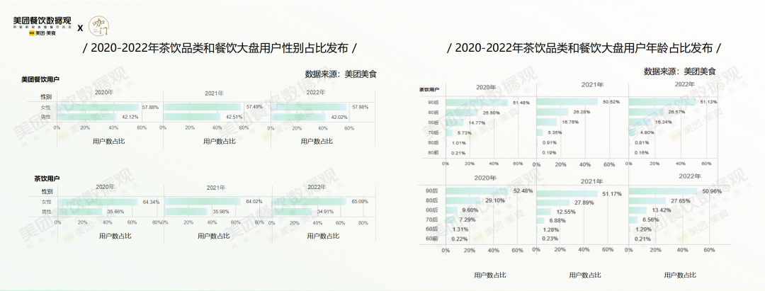 美团数据显示,相比餐饮大盘用户稳定的男女消费比例,茶饮用户近三年女性用户占比有所增长。