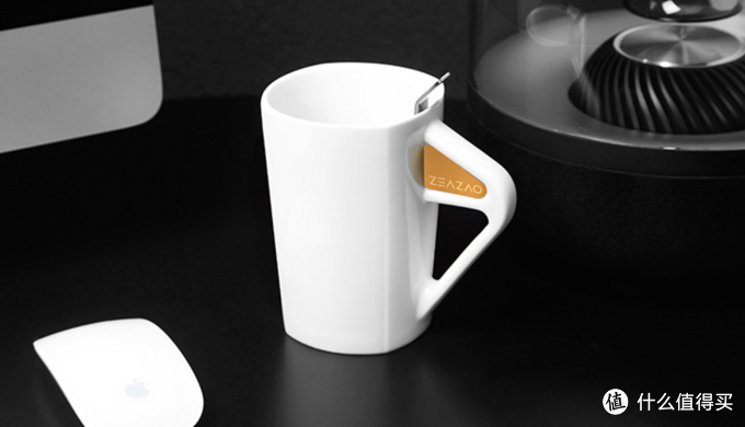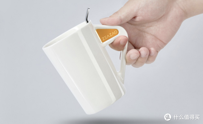 这是获得红点设计奖的一款马克杯,杯子手柄内侧有高强度磁石,搭配的金属调羹会被吸附住,喝水的时候就不会被勺子打脸了,同时勺子带刻度,需要准确把握水量的时候就方便了。