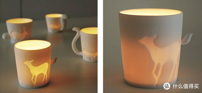 有趣的是,白天它是杯子,到了晚上它还可以是小夜灯,放个香薰蜡烛进去。