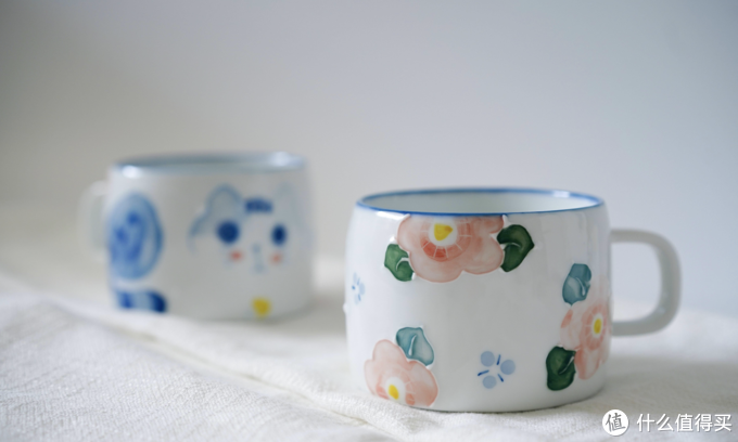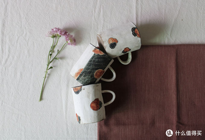 我对日式手作有一种说不清楚的迷恋,看看这两只杯子,工艺粗糙,绘画笔触也很斑驳,但就是有种游离的复古感,越看越好看。