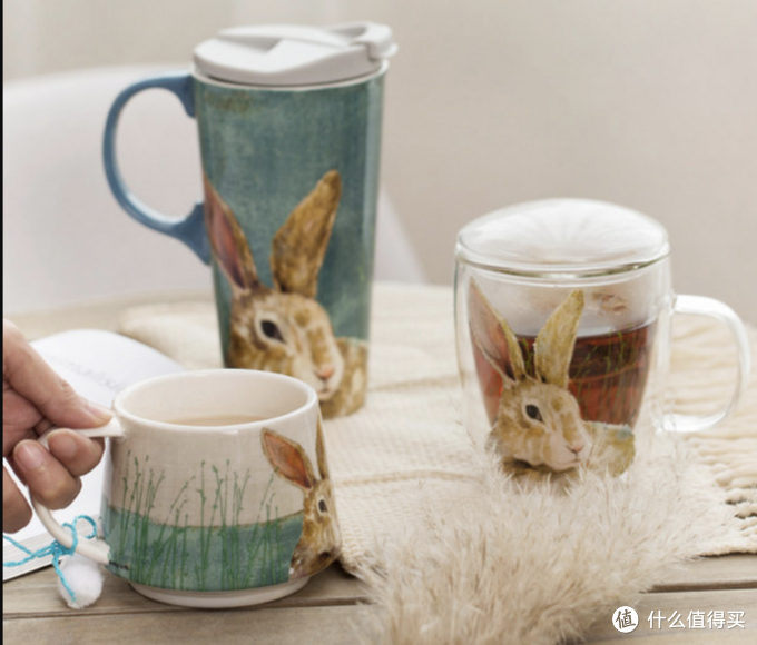 其实这是一组套杯,大马克杯和小马克杯,还有一个透明玻璃杯,漫画兔子形象有些童话里的梦幻感,陶瓷杯是景德镇的优质陶瓷,矮杯还有个装饰毛球比较可爱,至于玻璃杯是双层,带盖有茶隔。一整套我觉得很适合作为礼物送人,包装也够精致。