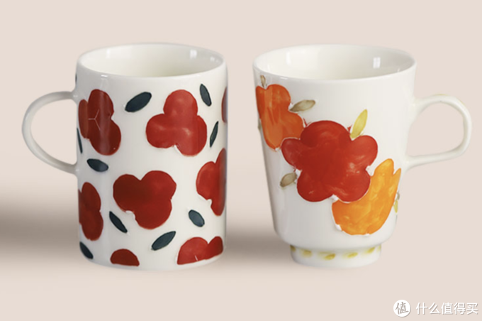 这一组杯子的图案是手绘+手雕,花色可爱又复古,很适合田园风家居。