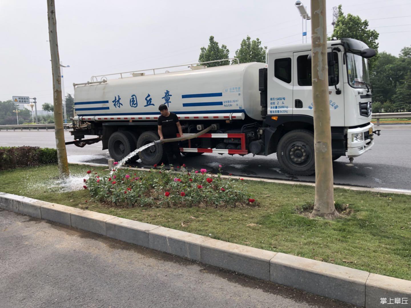 “经十东路是咱们章丘的主干道,绿化水平和档次直接体现章丘的城市形象。为了把经十东路这条生态景观大道建设的更加靓丽多姿,我们园林局从5月初开始对经十东路进行绿化整治提升,在绿化补植的基础上进行“添彩”工作。在道路分车带增添月季花色块,有菱形的、三角形的、椭圆形的等不同形状的月季花色块。种植月季花前的定点放线工作尤为重要,放线的度直接决定了月季花色块的形状是否规整,我们一般都会用卷尺良好尺寸再进行定点放线,度。一般20-30株/平方米。月季花被称为花中皇后,又称“月月红”,是常绿、半常绿低矮灌木,花期5月-10月底,一般为红色、粉色、白色和黄色等多种颜色,是典型的观赏植物,我们种植的是三年生的重瓣月季,花型优美、色彩艳丽、丰富、香气浓郁。月季花种植后我们会加强浇水、施肥、修剪等工作,月季花正常生长。”园林局直属养护部王咏梅为记者详细介绍着每一处的细节。