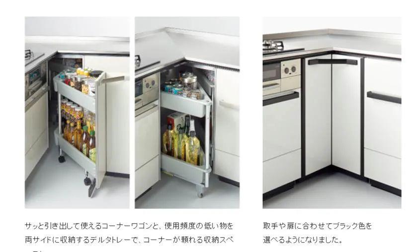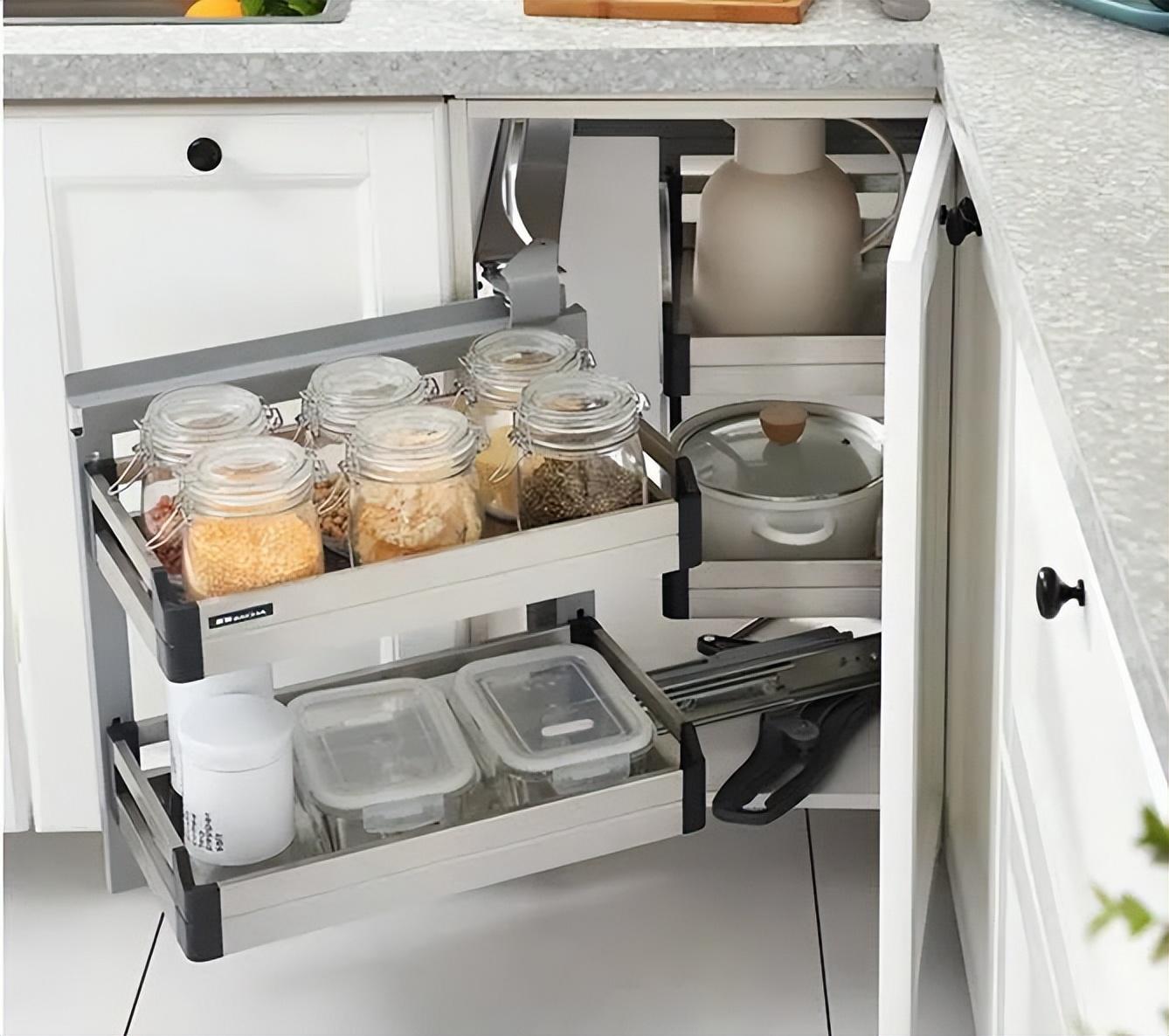 近两年还推出了一种“转角小怪物”,可以把平篮从橱柜里面拉出来,方便。