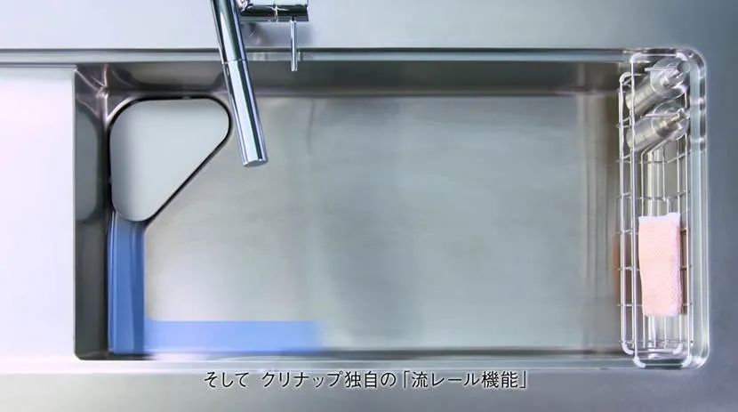比如cleanUp这款水槽,就在左下角精心设计了导流结构,污水能顺着导流槽自动汇聚、排出。