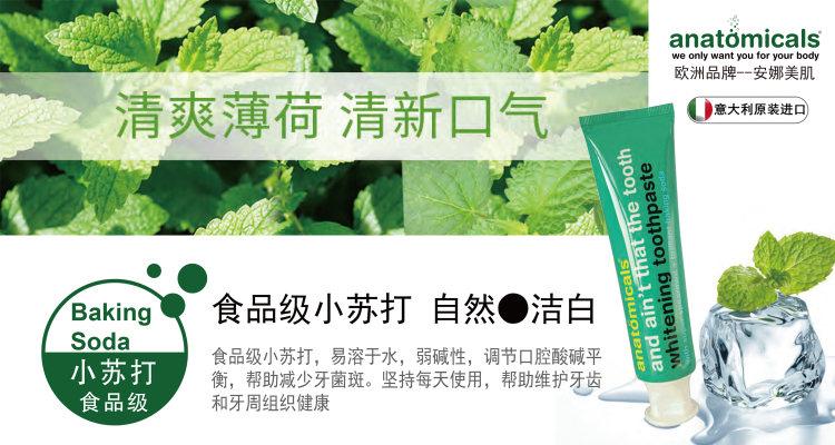 Anatomicals安娜美肌,英国大众口腔护理及品质生活日用品牌,主打产品为“薄荷小苏打牙膏”,使用食品级小苏打成分,易溶于水,弱碱性,调节口腔酸碱平衡,帮助减少牙菌斑。在英国本土和意大利均设有生产基地,产品畅销整个欧洲地区。在中国,已进驻亿莎、氏兰町等知名连锁系统。