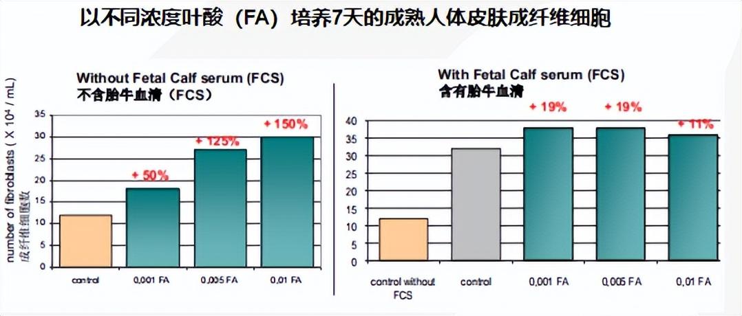 *数据来源于帝斯曼《叶酸添加化妆品应用2008年5月AH》- 叶酸加快成纤维细胞更新