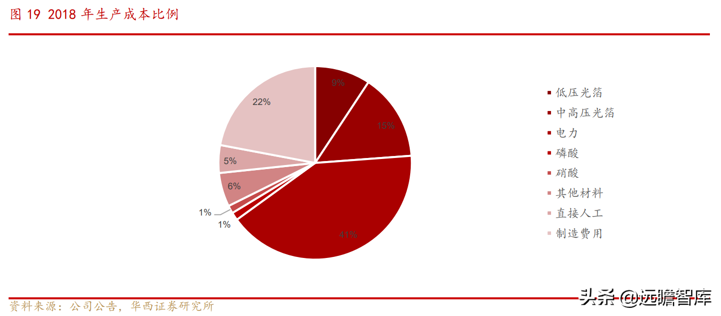 根据公司公告,2018 年电极箔的生产成本中,41%为电力成本。