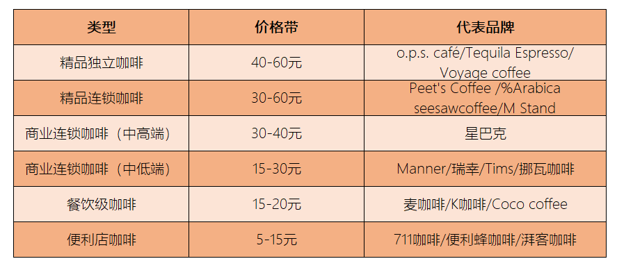 因此,中国咖啡市场也慢慢形成了以“价格带”为标准的竞争格局。
