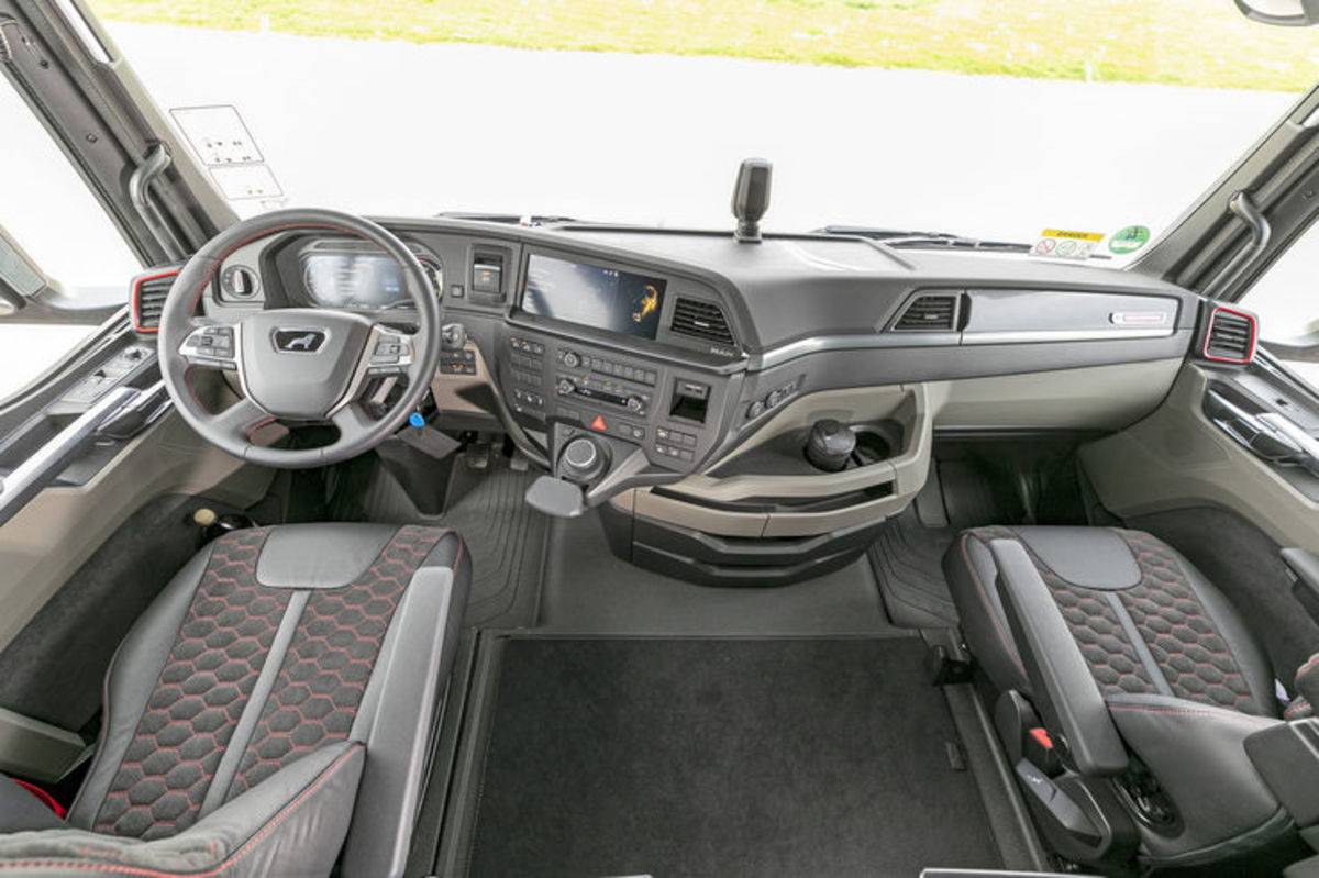 值得一提的是,MAN TGX Individual S的驾驶室同样采用平地板设计,并且内部高度接近2000mm,虽然没有达夫XG+的高度那么夸张,但是应对日常的使用还是绰绰有余了。并且MAN TGX Individual S的副驾座椅同样支持旋转设计,并且主副驾座椅的肩部都可以单独调节角度,搭配上超厚的海绵填充,让其在长途驾驶的情况下拥有不错的舒适性。
