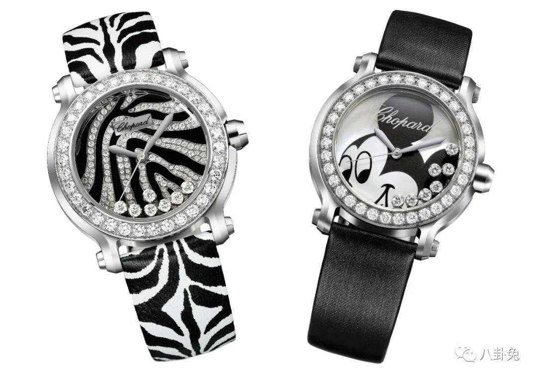 一个很形象的比喻,Happy Diamonds(左)的钻石流动沿着表圈,像过山车,而Happy Sport(右)的钻石会在盘面随意碰撞,像碰碰车,前者优雅,后者运动