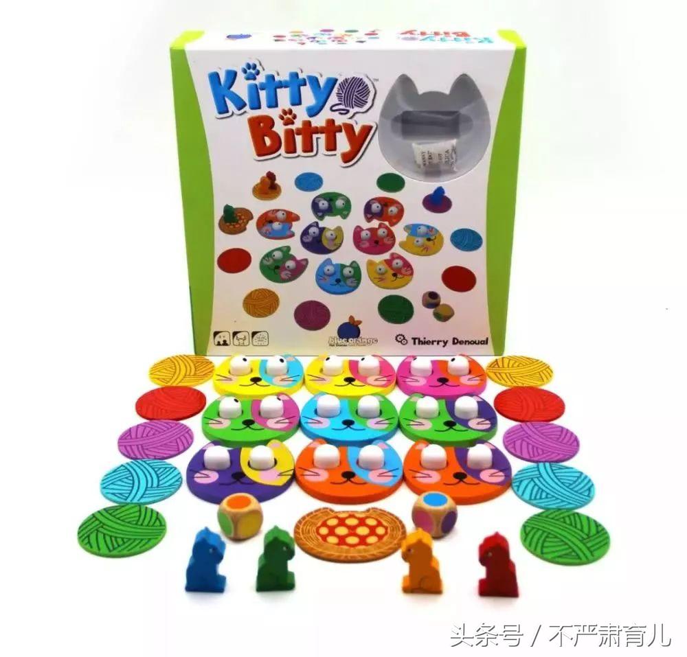 2.Kitty bitty(小猫凯蒂)一群不睡觉的小猫,想要瞒着猫妈妈出去玩毛线球……这个背景第一时间吸引了猫控珊妹。这是一个记忆类桌游,根据两个骰子上的色彩组合,找到特定的猫妈妈。猫妈妈有两只眼睛,可能画了小猫猫,也可能没有,玩家们需要记住哪些眼睛有小猫,哪些没有,从而躲过猫妈妈的管教。