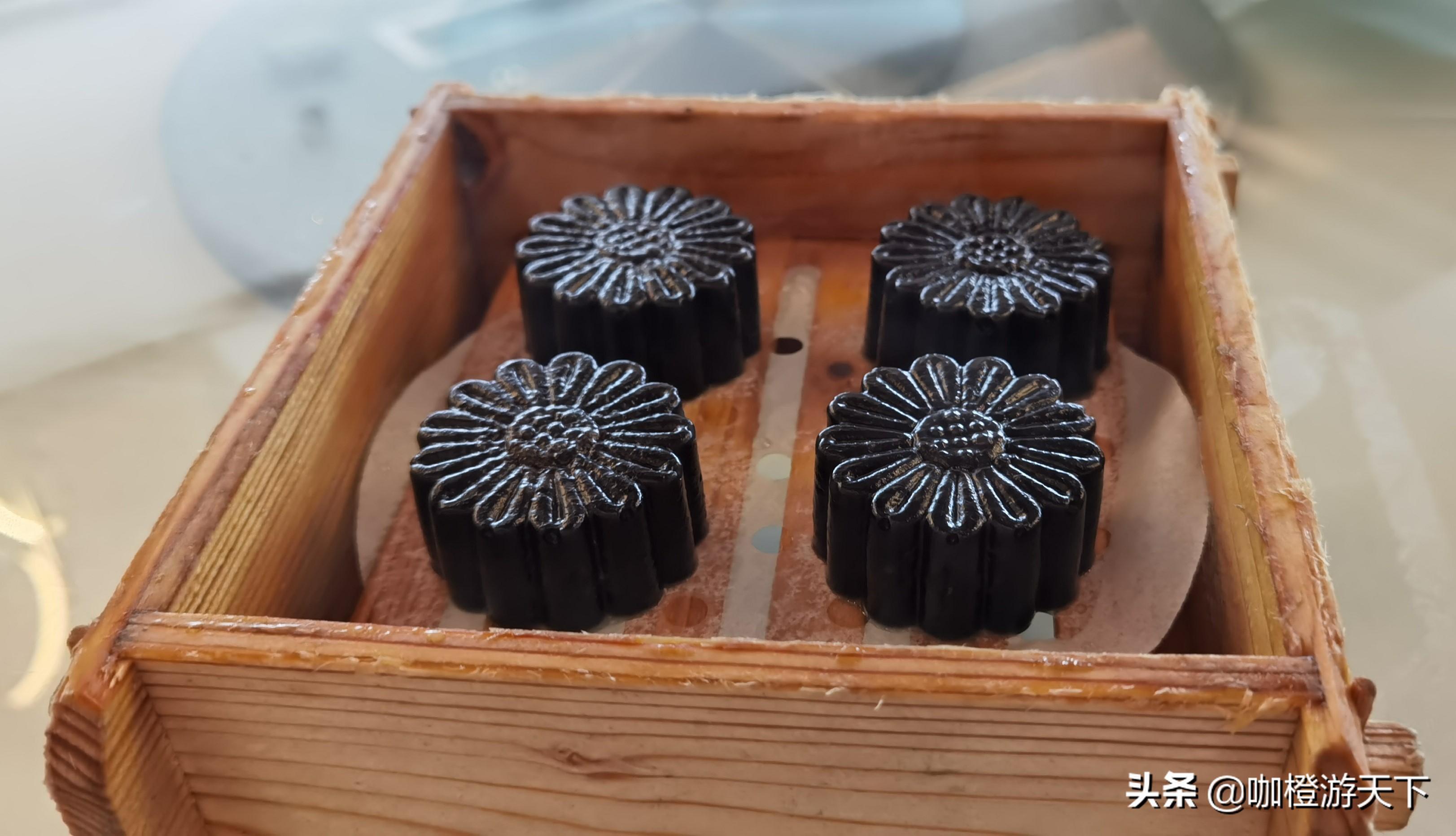 和其他黑芝麻点心不同,芝麻糕的口感比较特殊。由于在制作上,借鉴了“马蹄糕”的做法,黑芝麻糕的口感光滑、细腻,富有韧性。吃起来没有芝麻的粗糙,倒是有些像果冻。