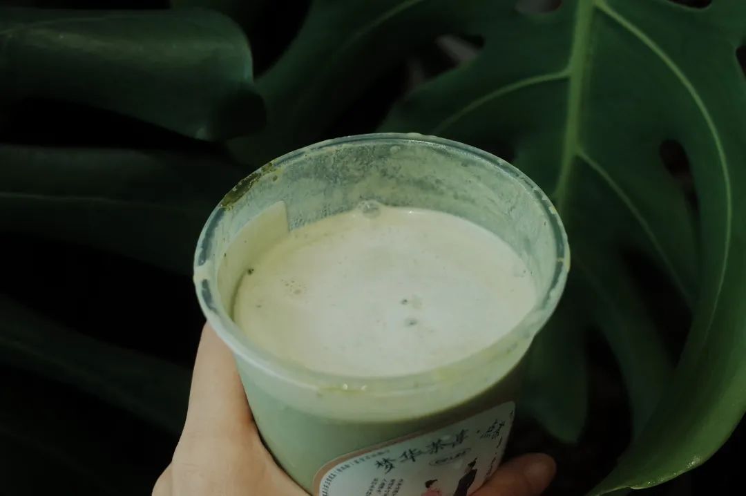 第一口喝起来时觉得似曾相识,后来想起来和元气森林乳茶有些像,但这款茶香味会更浓郁些,能尝到抹茶的苦味。对了,里面还加了抹茶冻,吸溜起来还是快乐的。