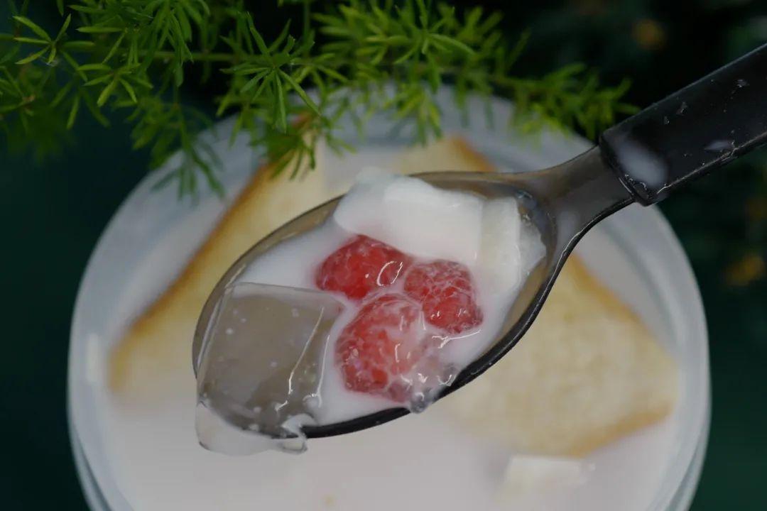 泡鲁达原本是缅甸、泰国那边的小吃,后来逐渐传到了云南,泡鲁达会把烤酥的面包干泡到椰奶中现做现吃,一般在正宗的云南餐厅菜单上才能瞥见,没想到有一天能在奶茶店看到它。