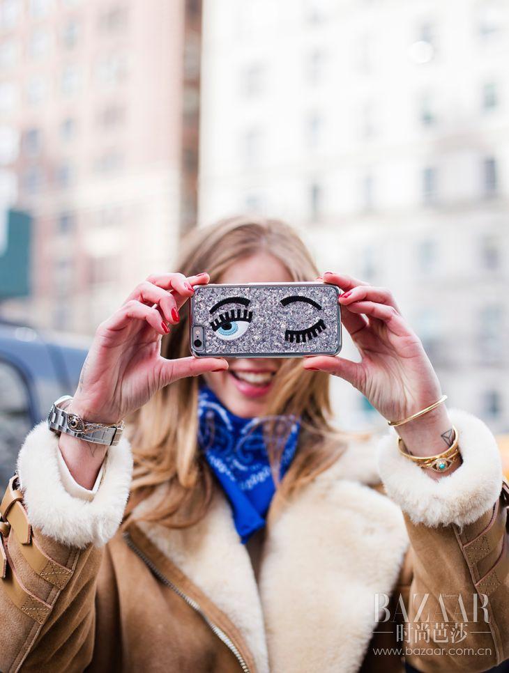 Blair Eadie 还以行动告诉我们,BaubleBar 的手机壳不光是手机的保护套,还可以用它来与服装顺色或是撞色搭配,在“不经意”间展现更多小心机,不费劲地时髦满分。