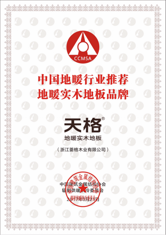 为了解决这个一直困扰地板、暖通行业以及地暖消费者多年的问题,天格耗费了大量资金、人力、物力专注研究,终研制出了集环保性佳、稳定性高、打理维护方便、可重复拆卸等优势于一体的地暖实木地板。此后,作为地暖实木地板的代名词,地暖地板的呼声一路高涨,传进万家。在众多用户切实体验到地暖实木地板的优异性能后,上游暖通行业也给予了一定肯定,将天格作为“中国地暖行业推荐地暖实木地板品牌”进行传播推广。而见证了地暖实木地板迅速崛起、高歌猛进后,诸多苦于无法转型升级的地板品牌嗅到了商机,纷纷加入地暖实木地板阵营,由此推动了地暖地板品类的整体发展。作为地暖实木地板的发明者与,天格自然成为了整个地暖地板行业的领军品牌。