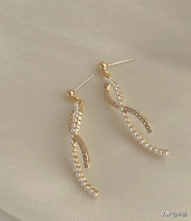 交叉线行耳环,这款不会很挑人,锆石+小珍珠巨巨巨仙气!