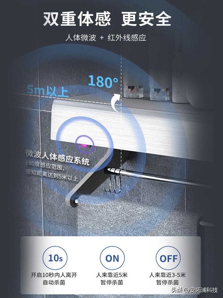 采取UV+UVC双结合的除菌抑菌方式比单一的UV果更好,深度杀灭细菌,皮肤就不容易长痘过敏啦!毛巾容易发臭的话,建议选择有负离子功能的产品,可以有消除毛巾异味霉味,尤其是可以释放出千万级生态负氧离子的智能毛巾架,比百万级的净化除味果更好。