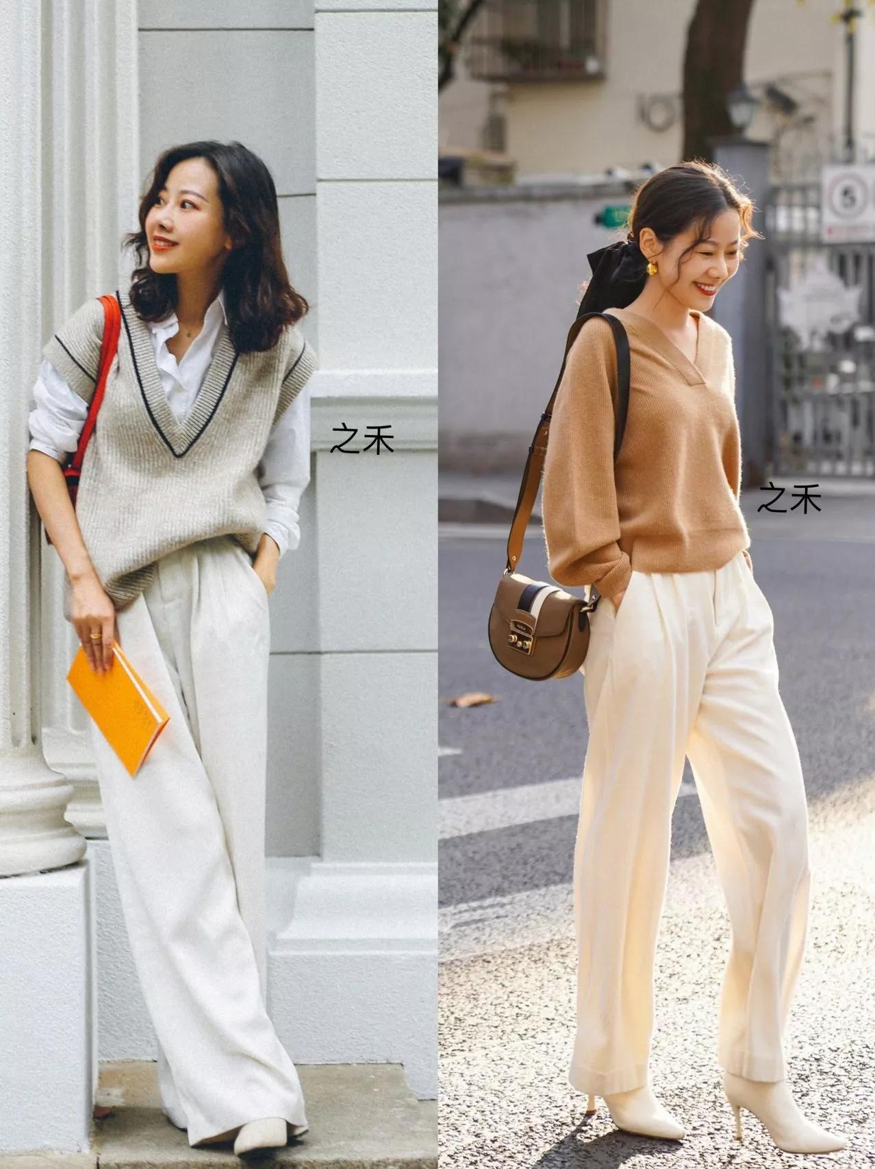 款式上圆领和V领套头毛衣,圆领和V领毛衣开衫,还有背心马甲,无外乎就这些款式,一般版型宽松一些更加时髦百搭,毛衣的重复利用率很高,建议80%都可以入手经典款,尤其是贵价品牌的~我也喜欢驼色系的毛衣,感觉就是秋冬的颜色呀