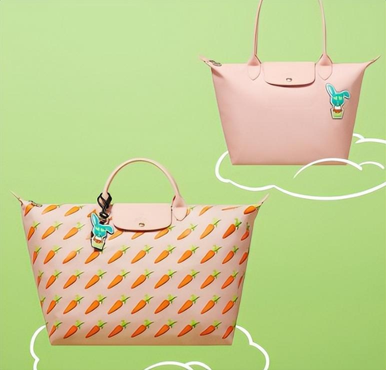Longchamp运用经典Le Pliage系列设计为基,打造以兔子为主题的2023新年限量包款,全系列均以玫瑰色或应该说是胡萝卜色为基调,山楂粉色的Le Pliage帆布旅行袋上有着满幅园艺印花。相同的设计也出现在迷你手提包上,其搭配灵活可拆的卸肩带,可以手提、肩背也可以斜背上身解放双手,相当实用。
