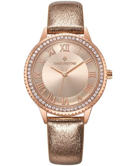Timothy Stone Parker 手表采用纯素皮革表带搭配水晶装饰表圈,融合了浮华和金属光泽。这款腕表采用别致的玫瑰金饰面,配有带罗马数字的同色调表盘和抛光合金表壳,重点是价格十分实惠。