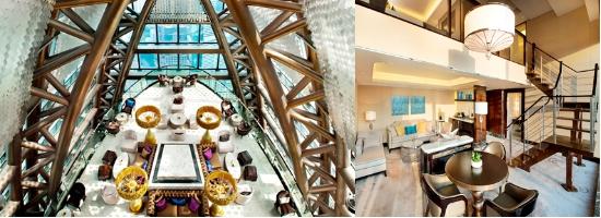 酒店外观大气,环境宁静安逸;房间设计很棒,mini bar里面的饮料免费,且每天都会有补充,比较贴心;工作人员的服务热情周到;几个餐厅都不错,自助餐种类较多,早餐也比较可口。