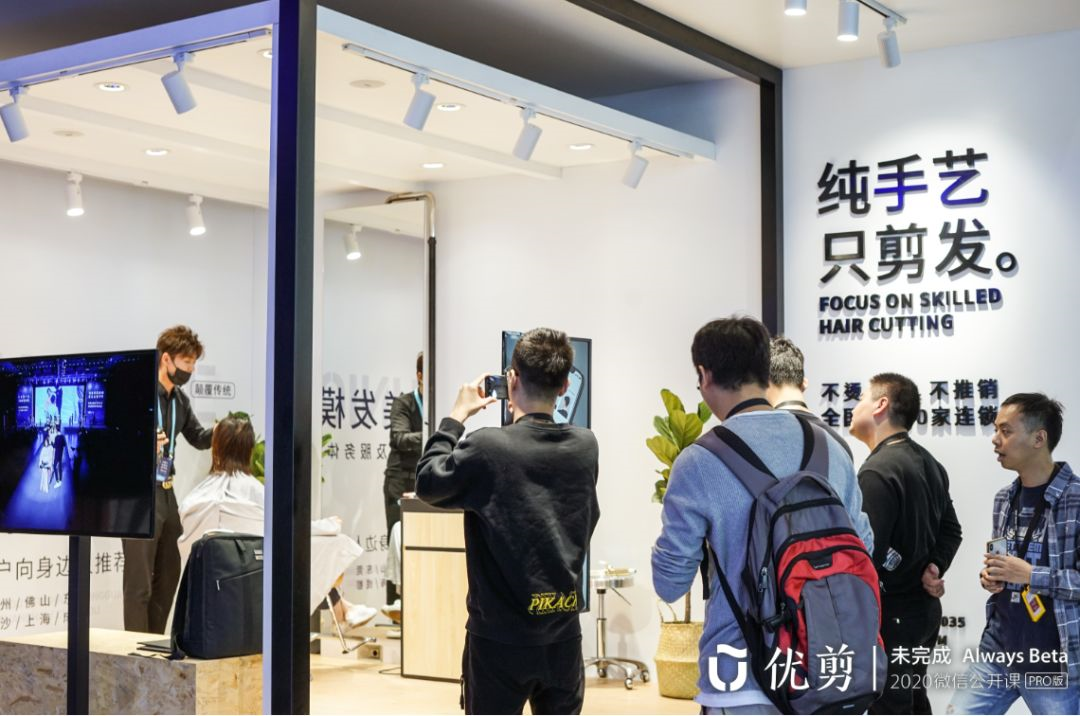 2020年微信公开课,优剪小程序取号、评价、支付系统受到官方关注,受邀将专业剪发工作室带到现场。