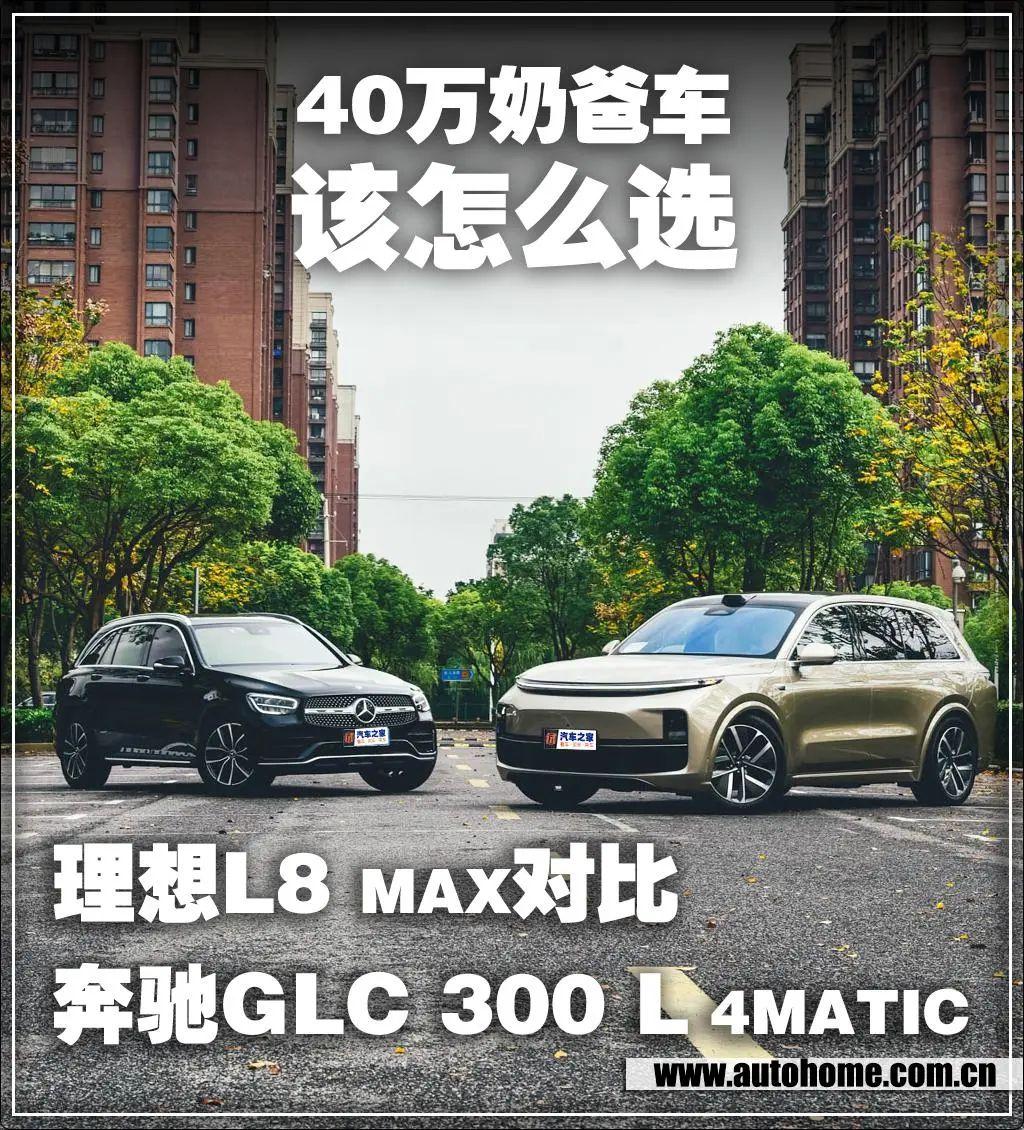 大家好,我是张立祥,又到了我的时间。如果你有裸车价40万左右的预算想买台奶爸车,你希望买到的是一辆有面子的车?还是配置顶天的车?相信这个问题曾经困扰过许多人。今天我们的两位主角,就是官方指导价落在40万元左右的SUV,理想L8 MAX和奔驰GLC 300 L 4MATIC动感臻藏版。两车虽然级别有所不同,但是价格十分相近,可说是两个正面遭遇的对手。
