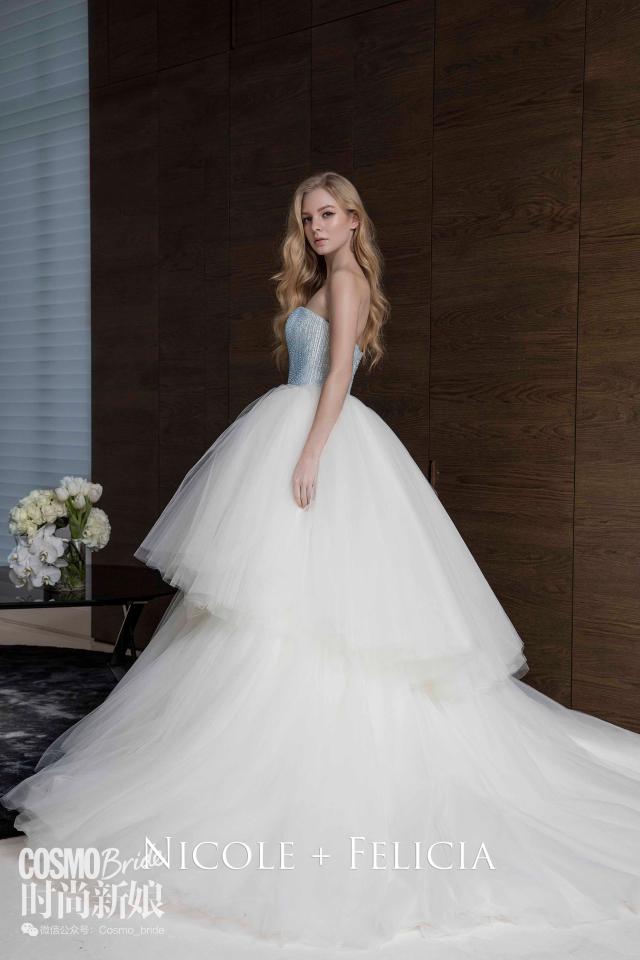 来自台湾的NICOLE+FELICIA强调精致的工艺和立体剪裁,配以法国蕾丝、施华洛世奇水晶等材料,让婚纱不仅仅是婚纱,更是的高级时装。安以轩台湾归宁宴的婚纱也是来自这个品牌~