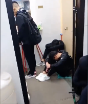 凌晨两点气温骤降大伙儿实在扛不住了只好…躲进卫生间坐在地上缩成一团