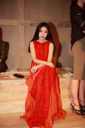 当地时间7月7日,来自中国的时尚名媛陆陆lulu出现在valentino的秀场,一袭红色的长裙,显得华贵又典雅,勾勒出陆陆妙曼的身材,美轮美奂,菲林,在众多明星当中脱颖而出。