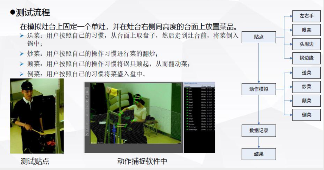 在模拟台上固定一个灶台,人的左右手、头部、眼睛各个部位都贴绿色记录行为轨迹(包括眼神轨迹)
