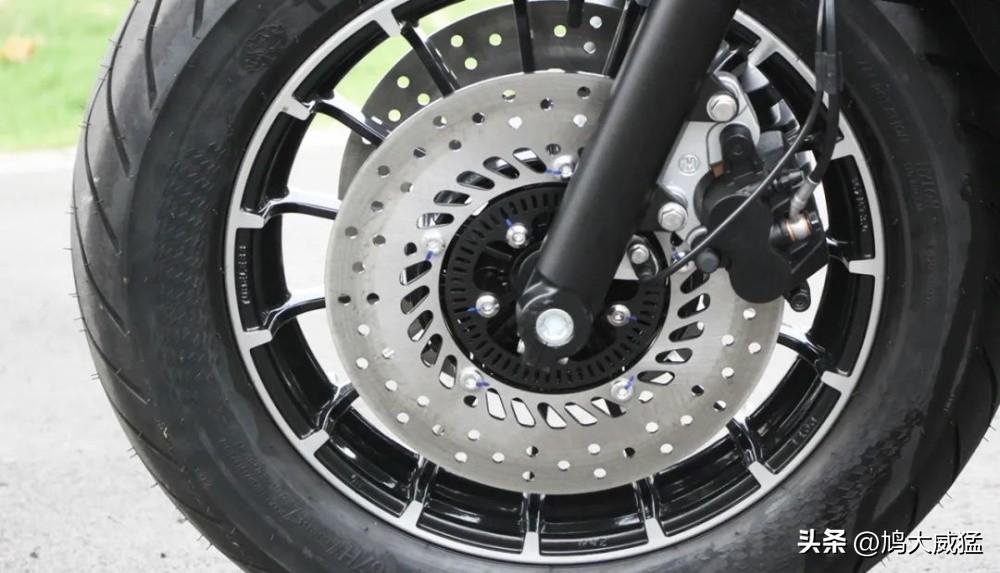 前轮规格130/90-16后轮胎规格150/80-16,轮胎制造商为腾森,我个人感觉在轮胎花纹上可以更贴近一些复古风范,这对抓地力和排水性都没的说,但是总觉得有点不。
