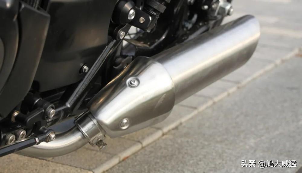 排气就是俗称的管叉外观,不锈钢材质,声音也可以获得良好评分,我个人认为稍微短了一些,“霸气”或是“大气”略有不足。还有一事就是边撑设计了一条侧出的“脚趾”,在支车的时候避免误触排气筒,车身干净同时保护鞋子。