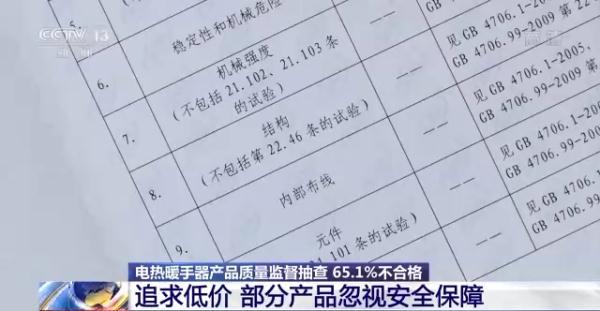 市场监管总局2022年发布的电热暖手器产品质量监督抽查结果显示,经过对全国13个省市流通领域126批次产品的抽查检测,发现不合格率竟然达到了惊人的65.1%。