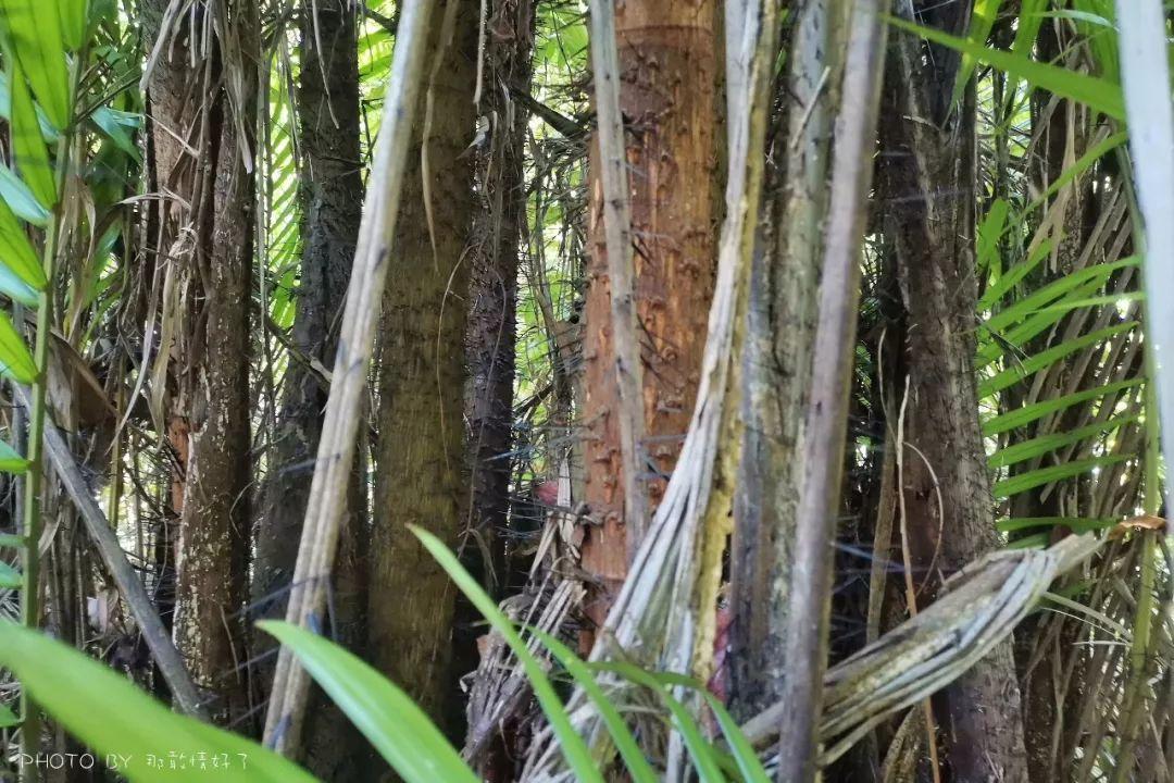 首先看到一种特别长的植物,叫Rattan tree,也叫wait a minute。长能长到一百多米,像竹子但不是竹子,里面是实心的,因为坚韧,可以用来做家具,很多海岛风的热带藤编家具都是取自于它。
