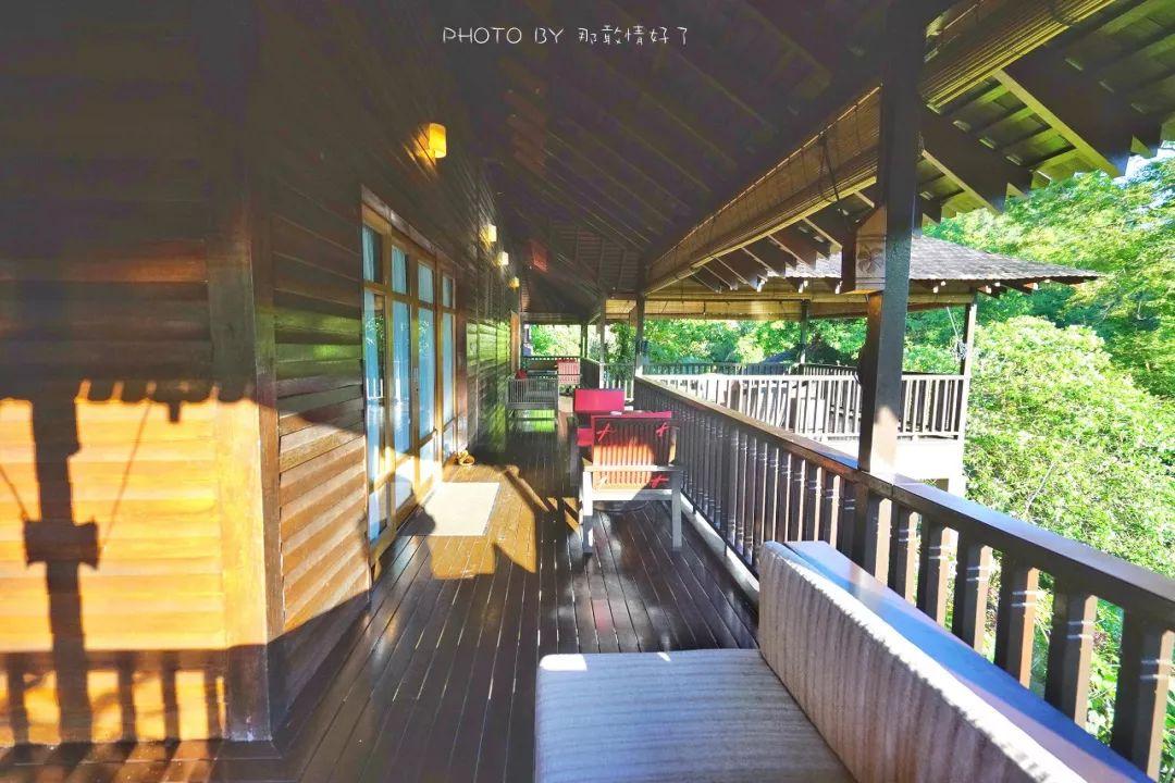 这一间是个套房,在主卧室的外边还有一个小屋子,可以作为影音室,享受私人电影院,那个宽敞的蓝色大沙发还能拉出来变成大双人床,影音室随时变成一间小卧室。室外的休闲沙发,靠在上头享受山间的空气,一眼望去满眼森林,干呆着也开心。