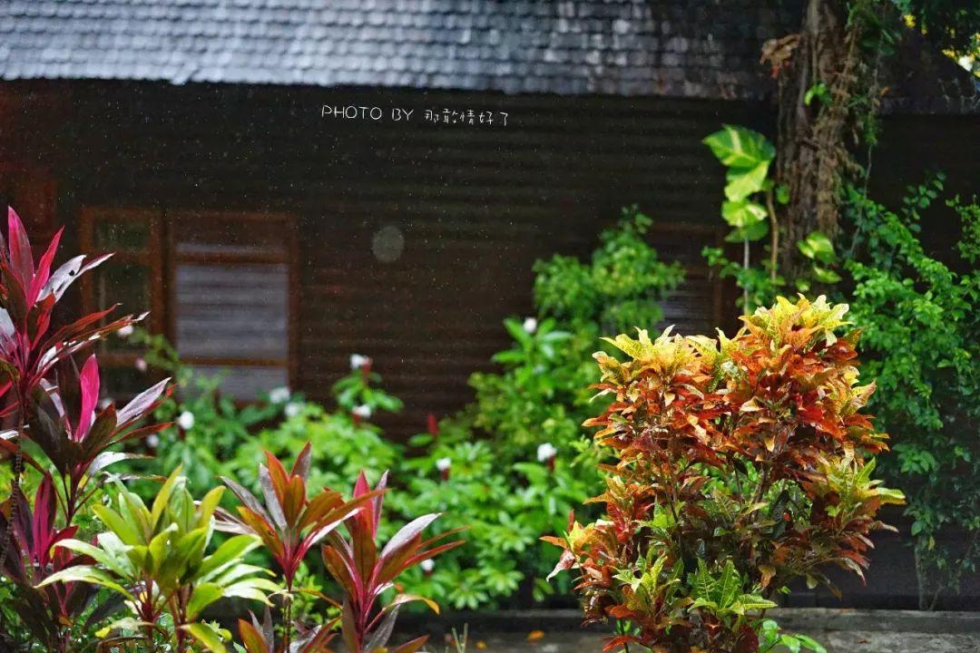 这时刚才蒙蒙的小雨越下越大,我站在别墅的楼台上看着周身处处叫不上名的热带植物被打得摇摆,还未天黑,各家各户的门前都亮起了门灯,一边清凉,一边温暖,这时候想的便是和家人、好友分享。