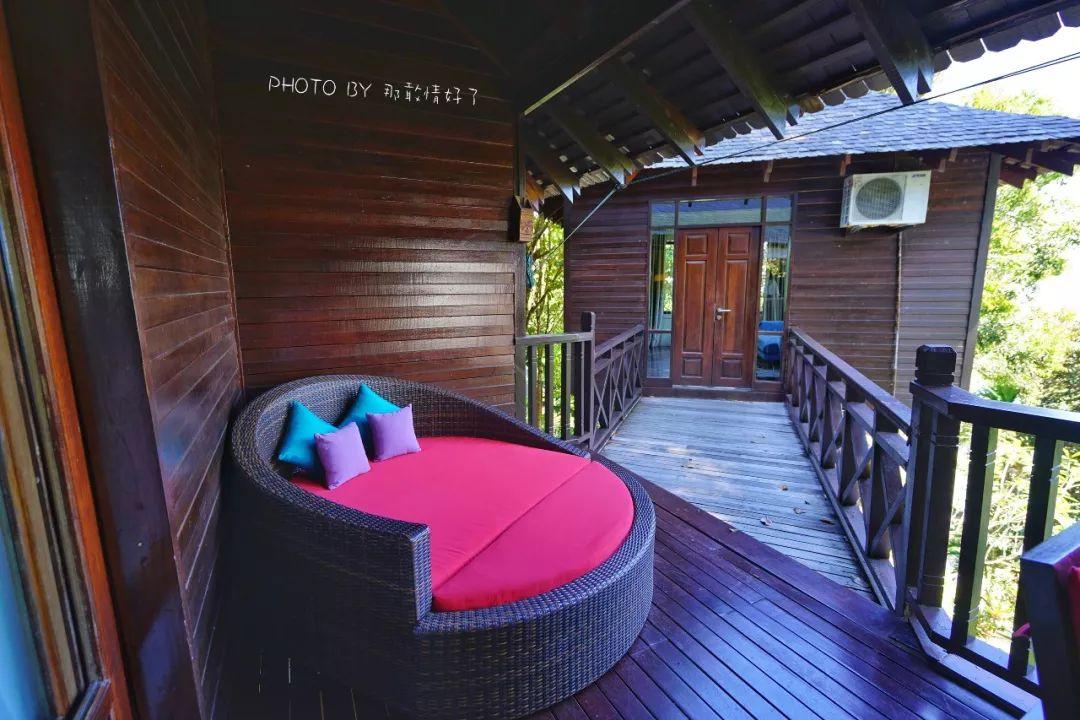 每栋私人别墅都是当地人手工粗凿而成的,沿着山坡阶梯式而建,融合了浓浓的当地传统建筑理念。我和朋友住的这一栋是对称的设计,两间大卧室在二层,两个楼梯入口,从山上走的话就是一层,从低处上去就是二层,这就是马来西亚的特色吊脚楼。