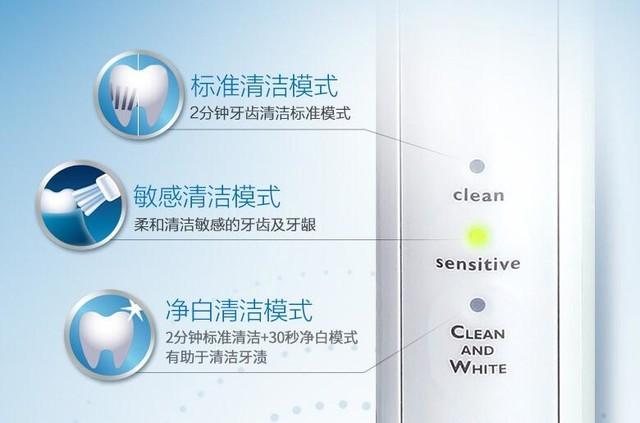 飞利浦Sonicare声波震动牙刷HX6730,具备清洁、敏感、净白3种模式。其中清洁模式是2分钟标准清洁模式;敏感模式能温和地清洁牙齿和牙龈;净白模式是2分钟清洁模式,另外附加30秒美白模式。同时还具有2分钟智能计时器的功能,能够达到牙医推荐的2分钟刷牙时间;30秒时段计时器,把口腔分为4个区域刷牙时间均匀,连细小的缝隙都不会落下。另有14天刷牙力度增强程序,刷牙力度会在使用初的14天内逐渐提升,帮助初次使用的用户更快适应电动牙刷。