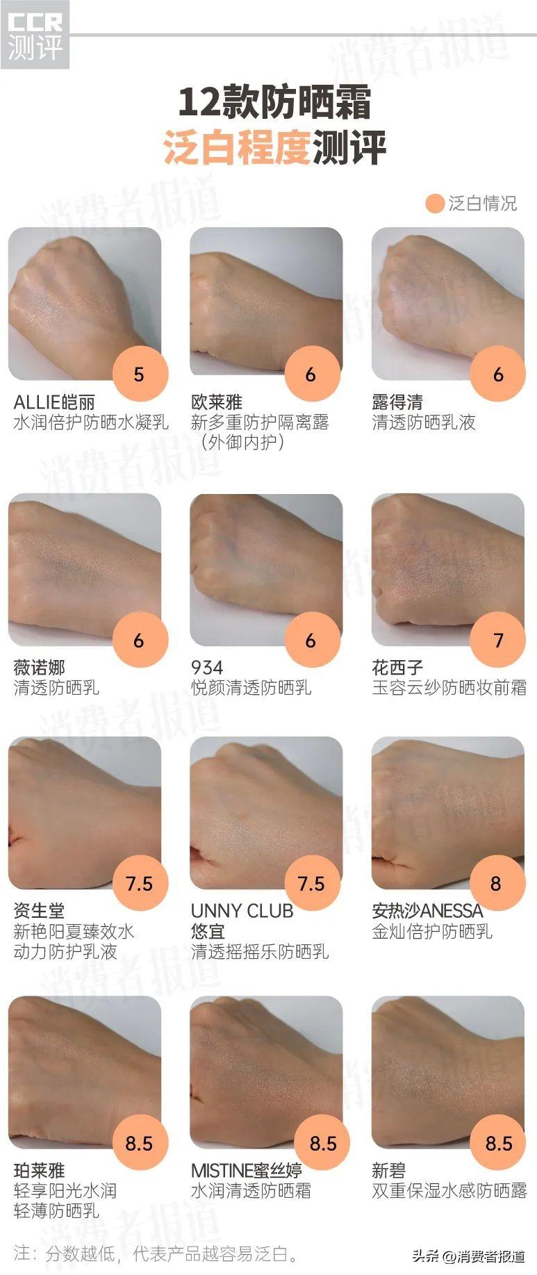 测试品牌安热沙ANESSA、欧莱雅、露得清、资生堂、薇诺娜、珀莱雅、ALLIE皑丽、MISTINE蜜丝婷、UNNY CLUB悠宜、花西子、934、新碧