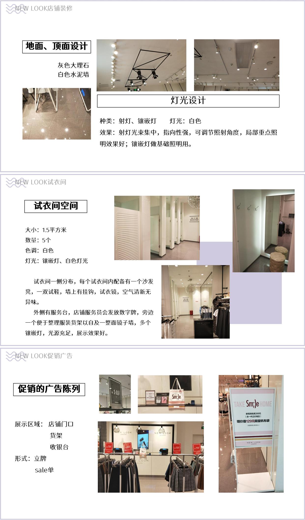 调研内容包含:品牌信息、店面门头设计、橱窗陈列、空间布局陈列、店铺顶面、地面设计、店内灯光设计、试衣间空间、收银台的整体空间、促销的广告陈列等等。