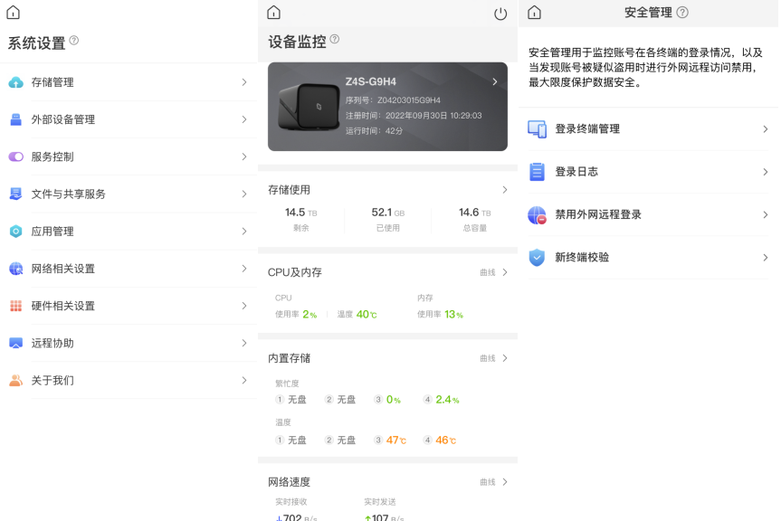 △系统设置与设备监控和管理,可以有效管理NAS状态