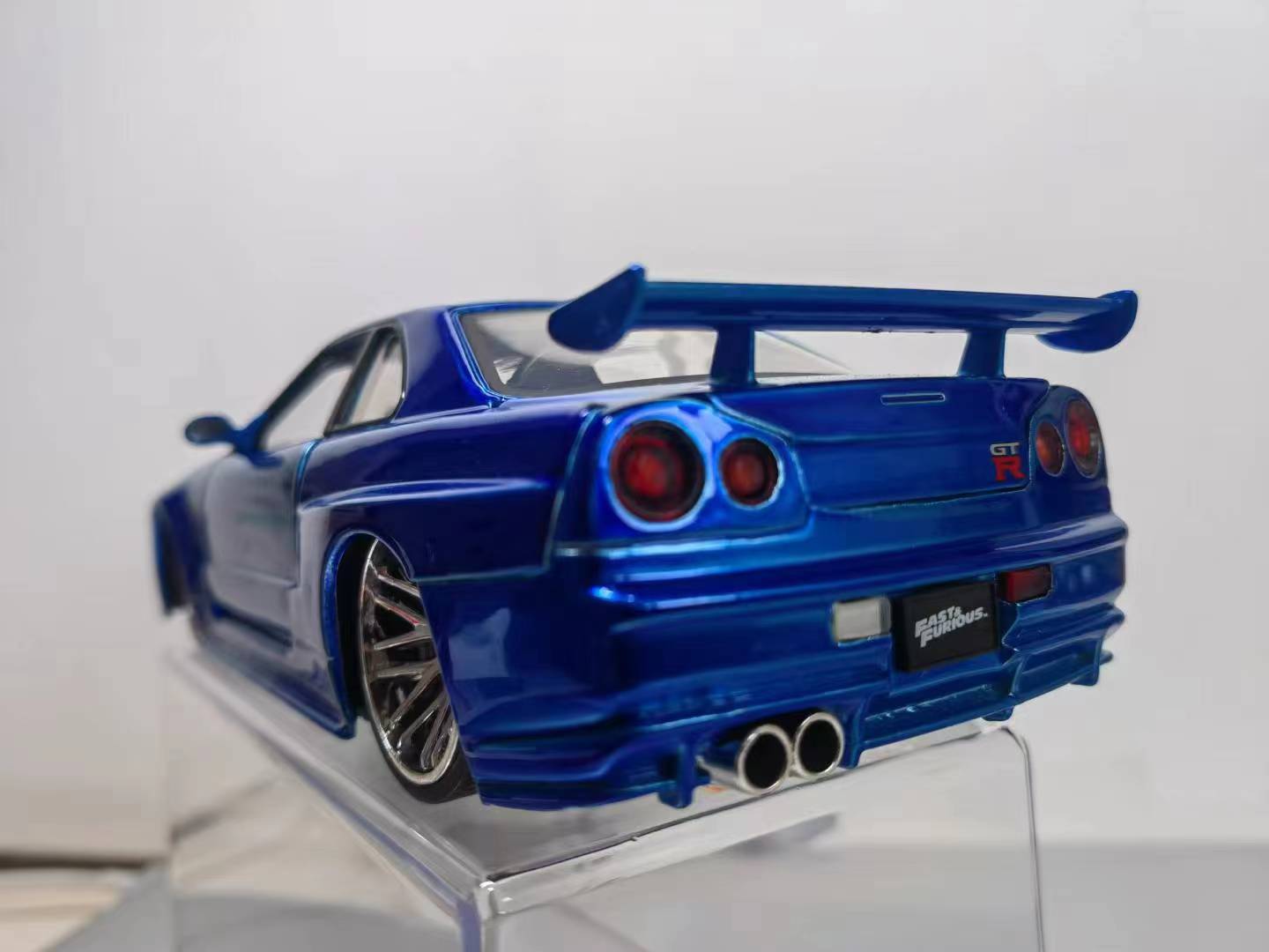 致敬情怀。速度与激情4,保罗驾驶的那款蓝色尼桑 R34 GTR。蓝色电镀车漆、BBS电镀轮毂+薄胎设计、GTR经典尾灯+尾翼,属实够帅,重点是保罗开的,致敬保罗!