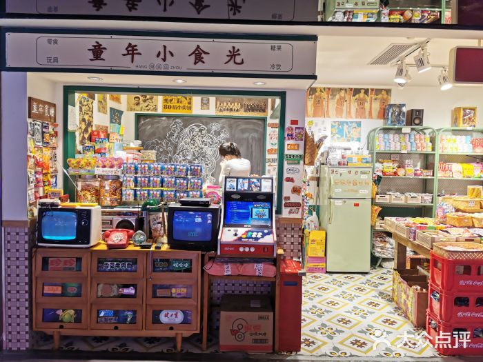 近两年,以童年小食光、小时候为代表的有怀旧感、亲切感的“80后零食店”在商场开始火热起来。这个类型的零食店门口通常都有老款的电视机、缝纫机、热水壶…复刻了很多80后小时候的场景,像是一家升级版“小卖部”。