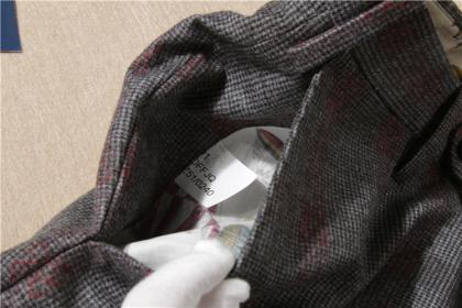 内里包边和裆部加固:内里包边一是为了整体质量以及美观性,二是为了稳定裤腰,裤腰不垮塌,裆部加固是为了整条裤子裤型更加硬挺,避免久坐后的尴尬褶皱。